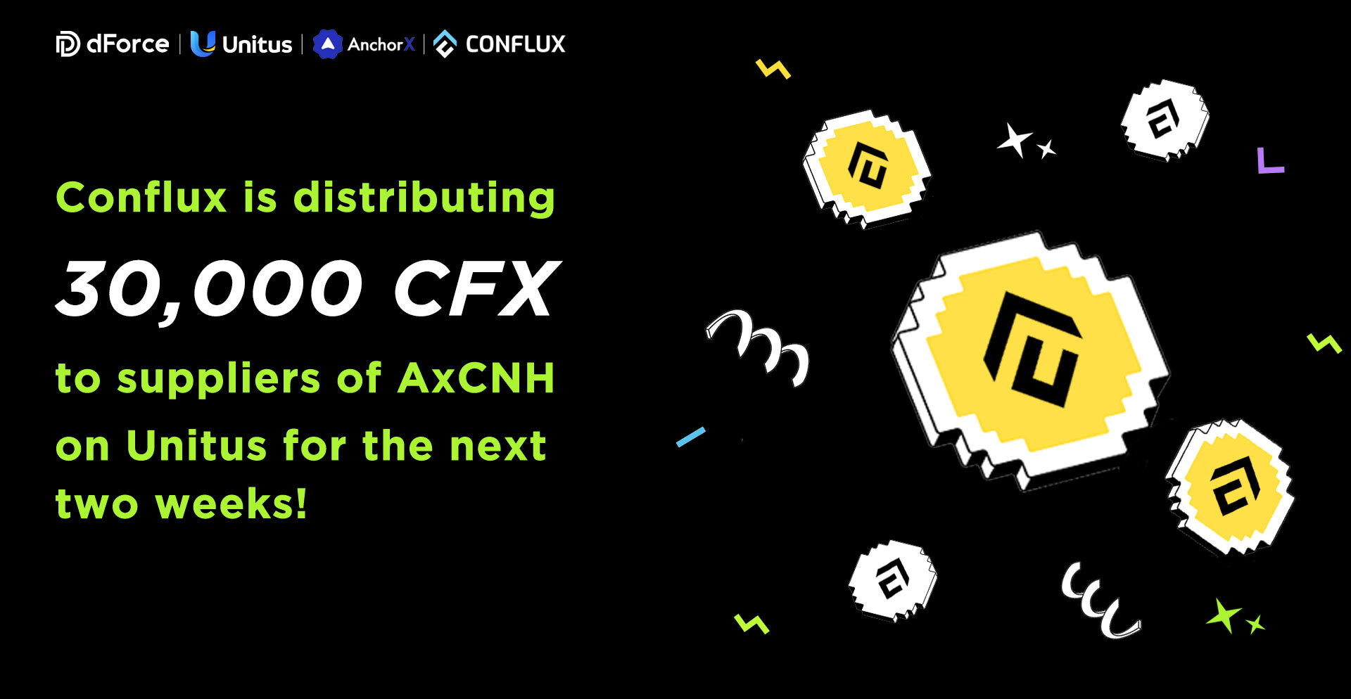 10月24日,Conflux 生态借贷协议 dForce Unitus 正式上线由 AnchorX 发行的离岸人民币稳定币 $AxCNH,用户可在平台上进行借贷操作。Conflux 与 dForce 借此联合举办激励活动。