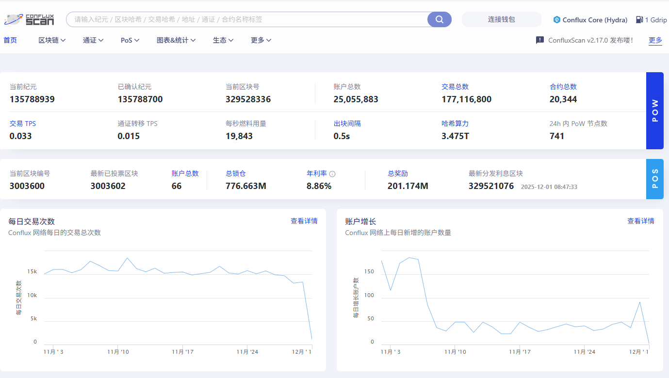 1.【POW参数】当前版本V3.0.1,总算力≈3.3T,节点数740,昨日交易次数13K,燃气费<$0.00001,CMC全网排名#112;
