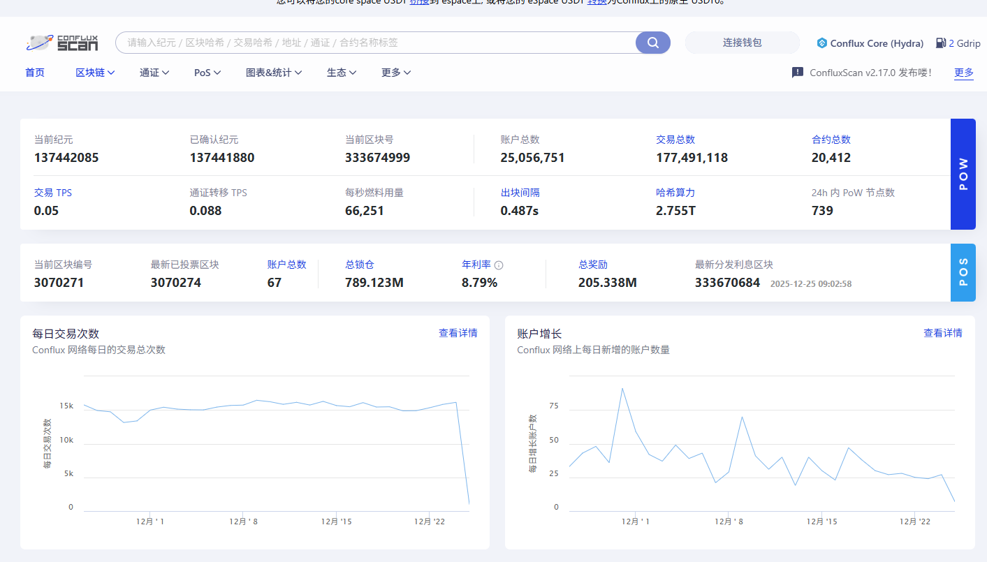 1.【POW参数】当前版本V3.0.1,总算力≈2.5T,节点数739,昨日交易次数16K,燃气费<$0.00001,CMC全网排名#101;