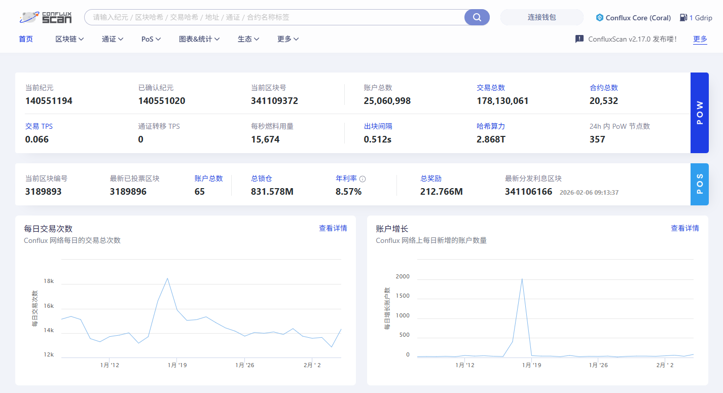 1.【POW参数】当前版本V3.0.1,总算力≈2.5T,节点数357,昨日交易次数14K,燃气费<$0.00001,CMC全网排名#124;