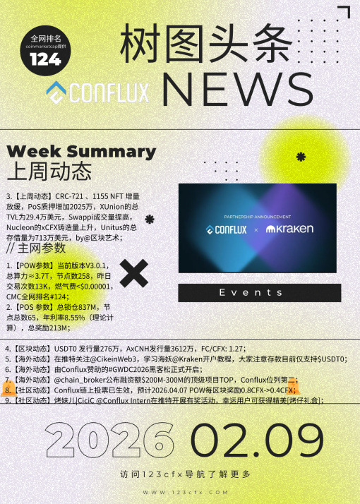 8.【社区动态】Conflux链上投票已生效,预计2026.04.07 POW每区块奖励0.8CFX->0.4CFX;