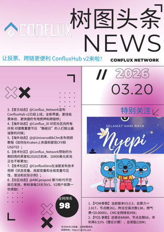 3.【官方动态】@Conflux_Network宣布ConfluxHub v2已经上线,全新界面,更佳投票体验、更快捷的专用质押和跨链桥;