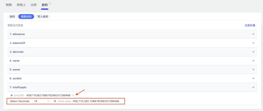(1)读/写合约中对于输出参数类型为 uint256/int256/uint128/int128 的数值,增加 decimals 的选择功能,选择后显示对应的小数点及千分位,提升大数的可读性。